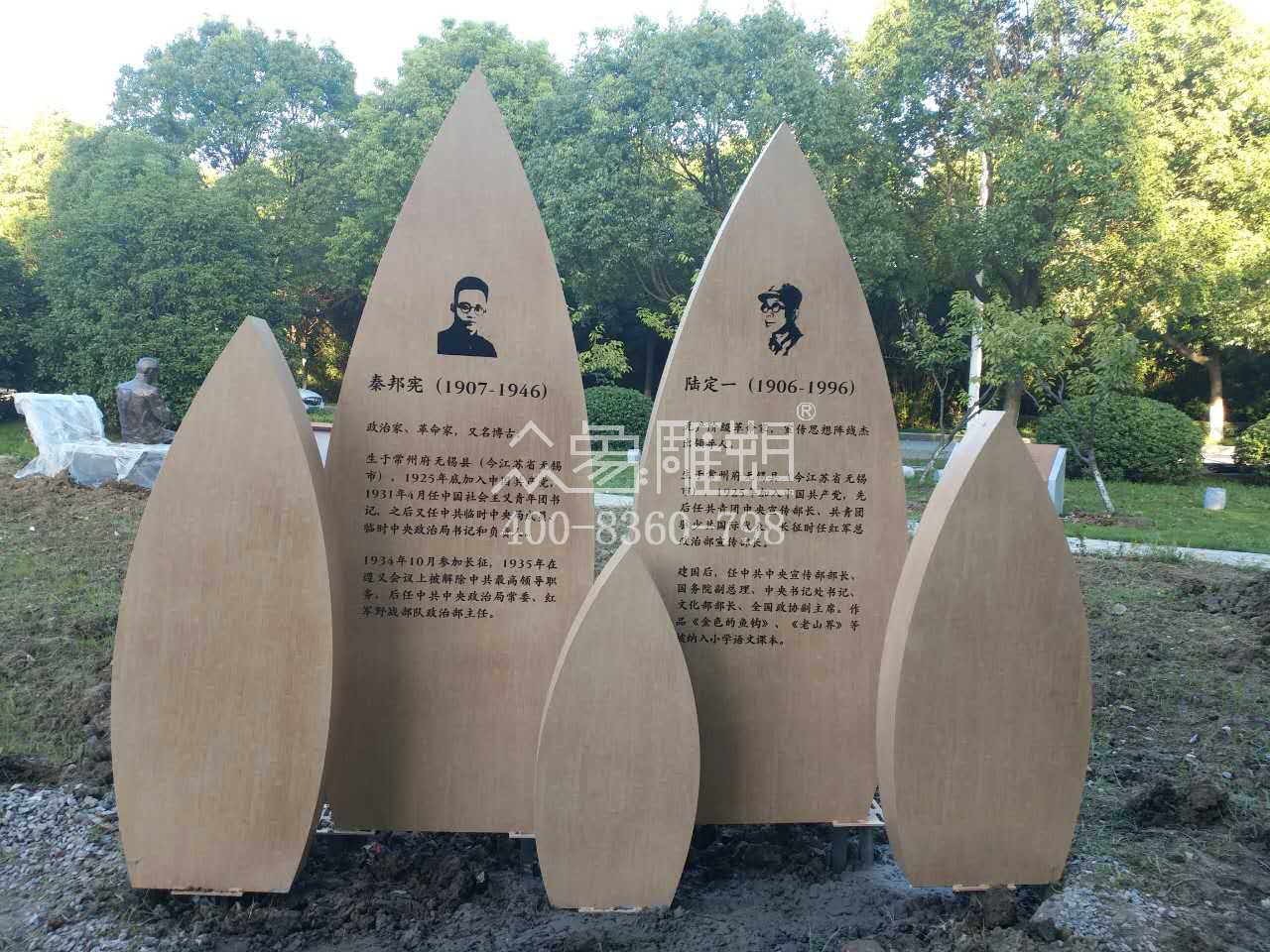 今天2017年8月23號,我們為無錫職院制作的名人苑雕塑已安裝完畢。這批雕塑材料主要以玻璃鋼與不銹鋼。