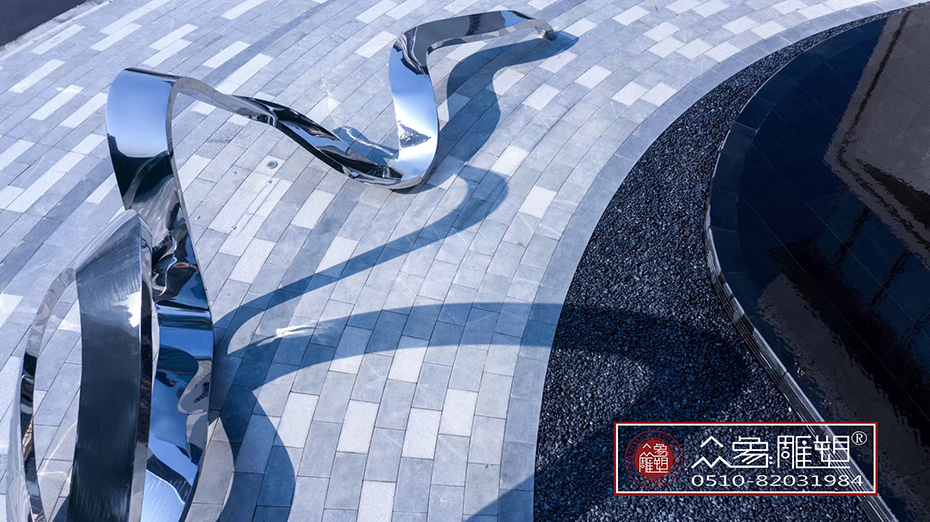【設計理念】:中海城南公館不銹鋼飄帶采用城市藝術線條,身處在現繁華的城市,卻體出現寧靜悠遠的藝術氣息,既可以當坐凳休息,又可以給小朋友當滑滑梯,工藝陳設價值、實用價值得到凌厲精致的展現。