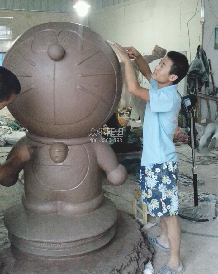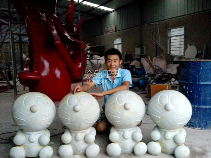多拉A夢雕塑組合為玻璃鋼材質,數量為五個,一個大的,高度為一米三,造型為一個大的多拉A夢站在銅鑼燒上,四個小的多拉A夢雕塑尺寸分別是60公分。該雕塑組合工序嚴謹,共分為泥塑、制模、翻模、打磨、噴漆、彩繪、運輸安裝,該雕塑組合制作精美,深受客戶好評,尤其深受動漫愛好者和廣大小朋友的喜愛。